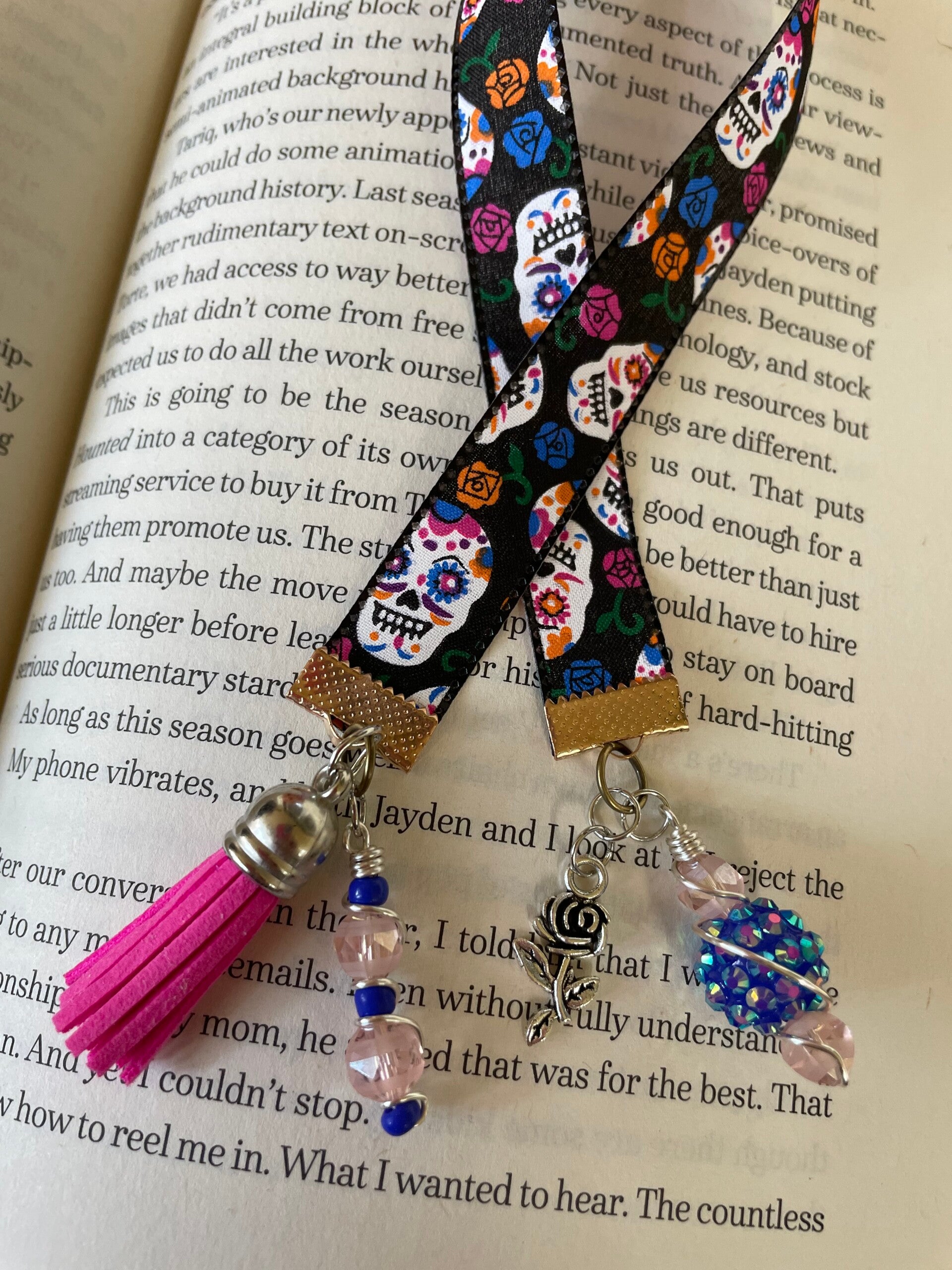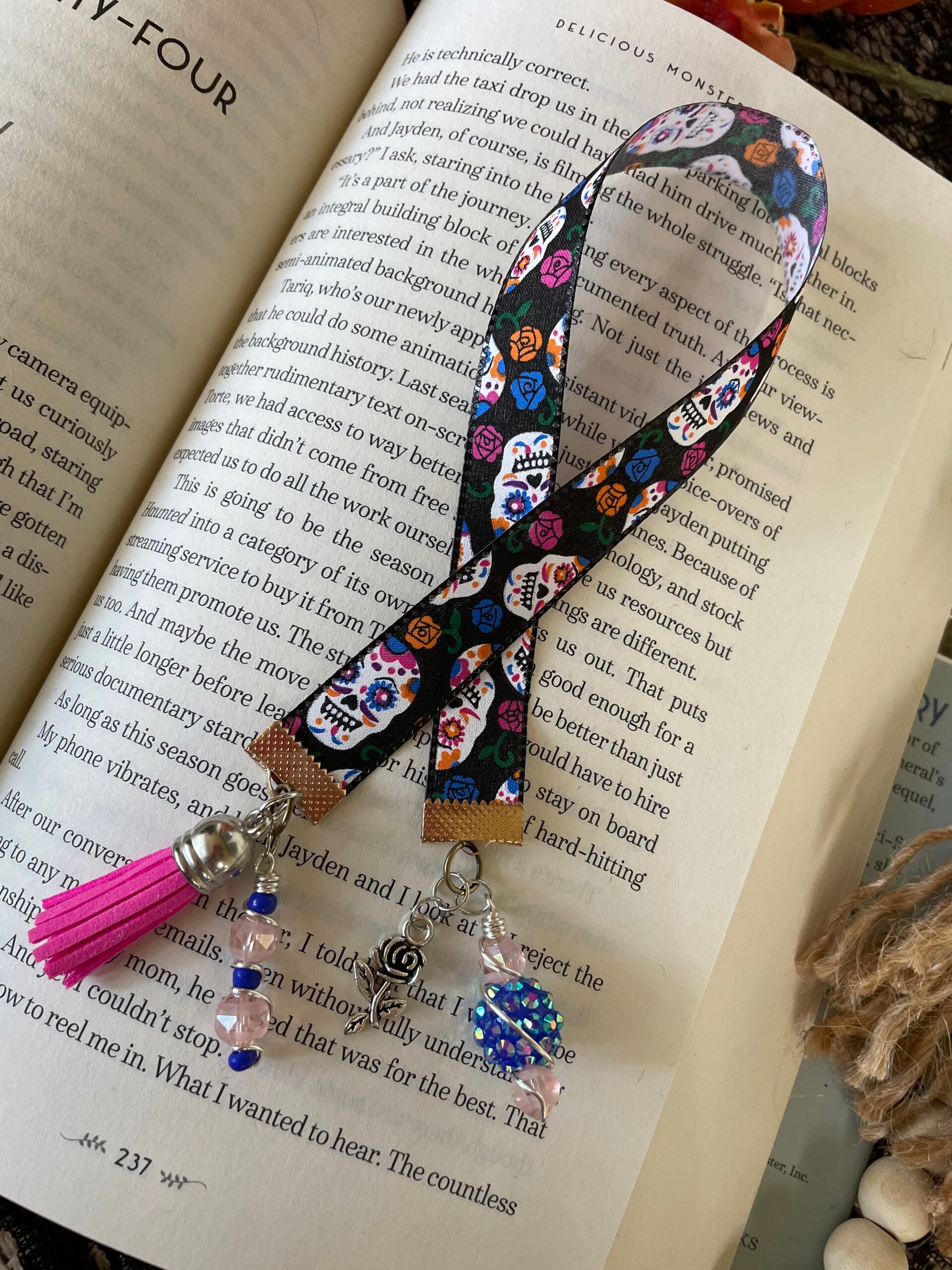 - This is a Handmade bookmark out of ribbon and charms with accessories and beads. They are adorable and would make the perfect gift for any "BOOK LOVER" in your life, or just the perfect little gift for yourself.