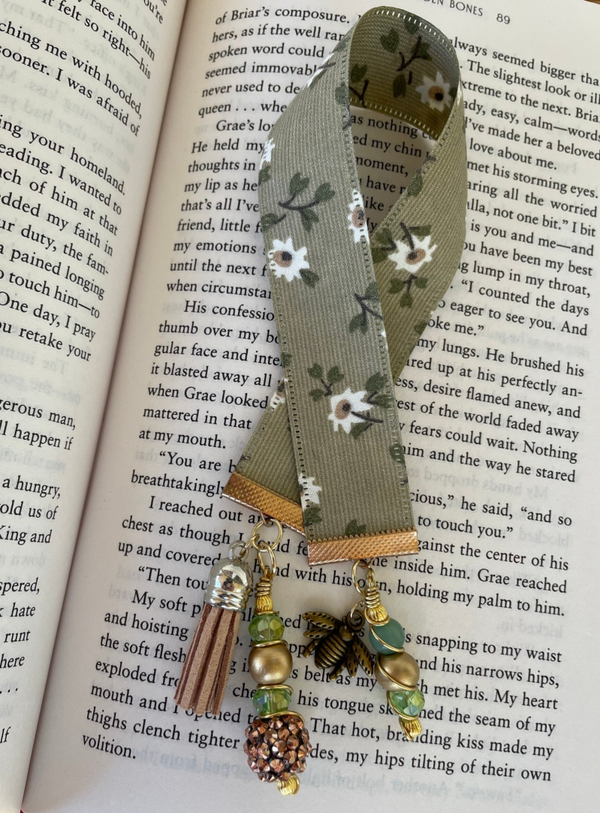 - This is a Handmade bookmark out of ribbon and charms with accessories and beads. They are adorable and would make the perfect gift for any "BOOK LOVER" in your life, or just the perfect little gift for yourself.