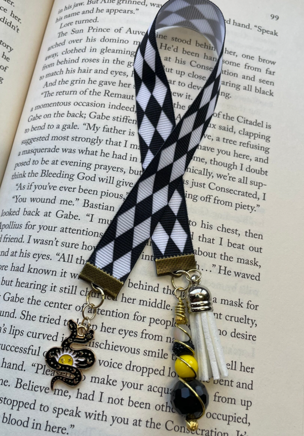 - This is a Handmade bookmark out of ribbon and charms with accessories and beads. They are adorable and would make the perfect gift for any "BOOK LOVER" in your life, or just the perfect little gift for yourself.