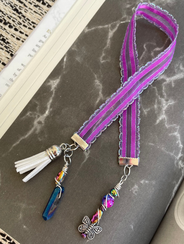 - This is a Handmade bookmark out of ribbon and charms with accessories and beads. They are adorable and would make the perfect gift for any "BOOK LOVER" in your life, or just the perfect little gift for yourself.