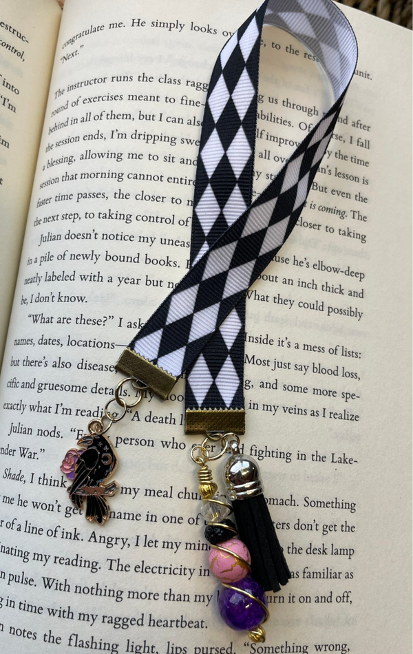 - This is a Handmade bookmark out of ribbon and charms with accessories and beads. They are adorable and would make the perfect gift for any "BOOK LOVER" in your life, or just the perfect little gift for yourself.