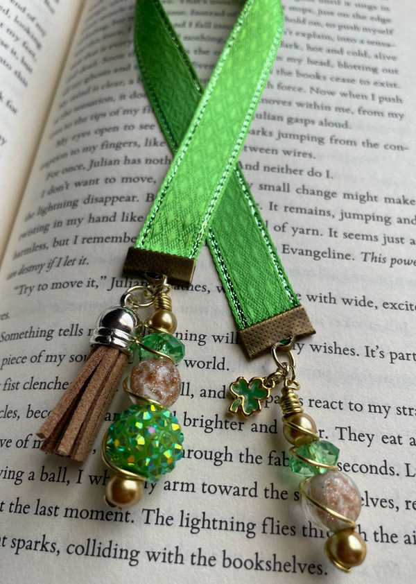 - This is a Handmade bookmark out of ribbon and charms with accessories and beads. They are adorable and would make the perfect gift for any "BOOK LOVER" in your life, or just the perfect little gift for yourself.