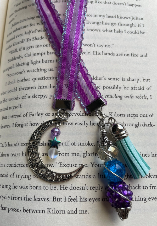 - This is a Handmade bookmark out of ribbon and charms with accessories and beads. They are adorable and would make the perfect gift for any "BOOK LOVER" in your life, or just the perfect little gift for yourself.
