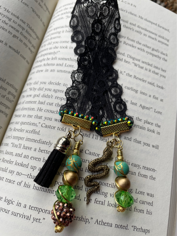 - This is a Handmade bookmark out of ribbon and charms with accessories and beads. They are adorable and would make the perfect gift for any "BOOK LOVER" in your life, or just the perfect little gift for yourself.
