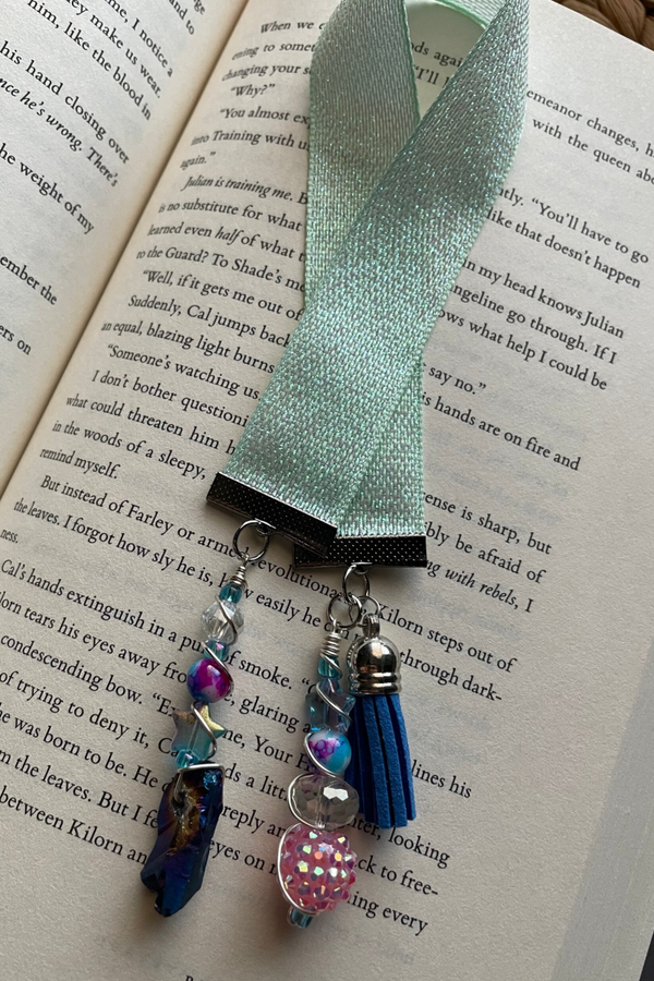 - This is a Handmade bookmark out of ribbon and charms with accessories and beads. They are adorable and would make the perfect gift for any "BOOK LOVER" in your life, or just the perfect little gift for yourself.