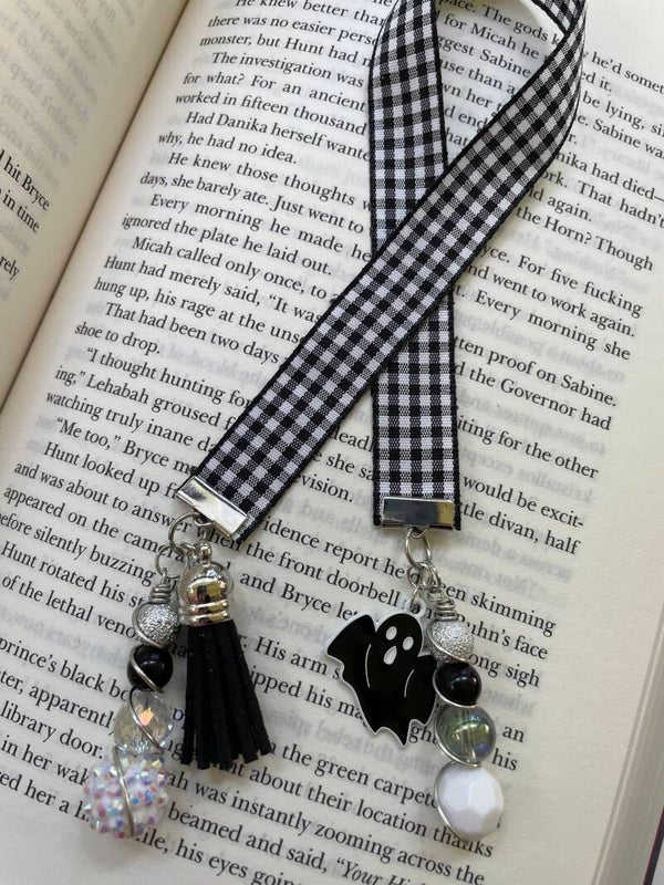 - This is a Handmade bookmark out of ribbon and charms with accessories and beads. They are adorable and would make the perfect gift for any "BOOK LOVER" in your life, or just the perfect little gift for yourself.