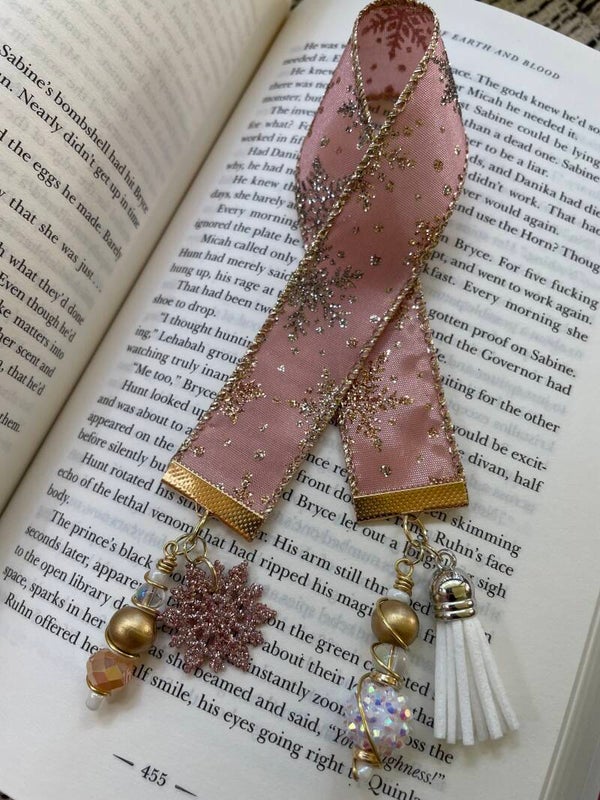 - This is a Handmade bookmark out of ribbon and charms with accessories and beads. They are adorable and would make the perfect gift for any "BOOK LOVER" in your life, or just the perfect little gift for yourself.